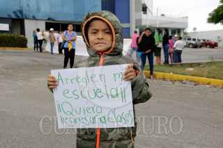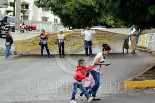 TUXTLA GUTIERREZ, CHIAPAS, 25OCTUBRE2017.- Padres de familia y alumnos de la escuela primaria federal Camara Nacional de Comercio, bloquearon una de las principales avenidas de la capital chiapaneca, para exigir al gobierno la reconstrucción de las aulas dañadas en la institución educativa o bien reubicación para que los niños ya no sigan perdiendo clases, esto debido al terremoto del pasado 7 de septiembre de magnitud 8.2. FOTO. JACOB GARCIA /CUARTOSCURO.COM