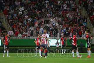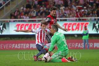 ZAPOPAN, JALISCO. 25OCTUBRE2017.- Miguel Jiménez portero de Chivas celebra la anotación de su compañero Edgardo Marín, esto en partido correspondiente a los Octavos de Final del Torneo Apertura 2017 de la Copa MX, en donde se enfrentan los equipos de la Chivas de Guadalajara frente a los Zorros del Atlas en el Estadio Chivas. El marcador al final fue de 1-0 a favor del equipo local. FOTO: FERNANDO CARRANZA GARCIA / CUARTOSCURO.COM