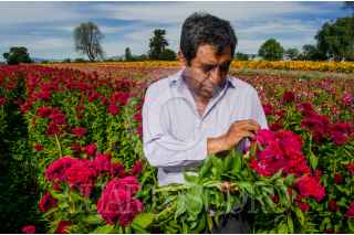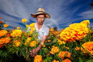 TLAXCOAPAN, HIDALGO, 26OCTUBRE2017.- Productores de flor de la comunidad de Doxey, comenzaron la cosecha de cempasúchil, nube, crisalias, mano de león y besos, flores tradicionales para los festejos del Día de Muertos; además anunciaron que se llevará a cabo el "Festival de las Flores" a realizarse el próximo 28 y 29 de octubre en este municipio. FOTO: JUAN PABLO ZAMORA /CUARTOSCURO.COM
