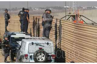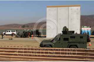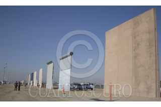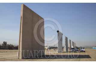 SAN DIEGO, CALIFORNIA, 26OCTUBRE2017.- Autoridades migratorias de Estados Unidos presentaron los ocho prototipos del muro fronterizo que prometió construir el presidente estadounidense, Donald Trump, a lo largo de los tres mil kilómetros de frontera con México. El subcomisionado interino de la Oficina de Aduanas y Protección Fronteriza (CBP, por sus siglas en inglés), Ron Vitiello, realizó un recorrido por los distintos diseños, cuatro son de concreto y cuatro de diversos materiales. La construcción colinda del lado mexicano con la colonia Las Torres, en donde policías federales resguardaron la zona. FOTO: CHRISTIAN SERNA /CUARTOSCURO.COM