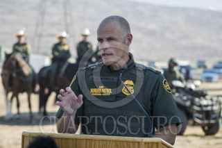 SAN DIEGO, CALIFORNIA, 26OCTUBRE2017.- Autoridades migratorias de Estados Unidos presentaron los ocho prototipos del muro fronterizo que prometió construir el presidente estadounidense, Donald Trump, a lo largo de los tres mil kilómetros de frontera con México. El subcomisionado interino de la Oficina de Aduanas y Protección Fronteriza (CBP, por sus siglas en inglés), Ron Vitiello, realizó un recorrido por los distintos diseños, cuatro son de concreto y cuatro de diversos materiales. La construcción colinda del lado mexicano con la colonia Las Torres, en donde policías federales resguardaron la zona. FOTO: CHRISTIAN SERNA /CUARTOSCURO.COM