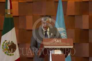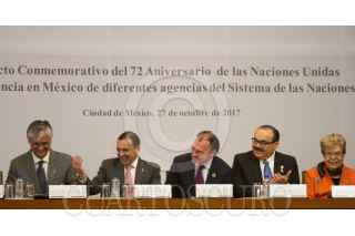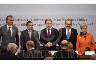 CIUDAD DE MÉXICO, 27OCTUBRE2017.- Antonio Molpeceres, Coordinador Residente del Sistema de Naciones Unidas y Representante Residente del PNUD en México, y Luis Videgaray Caso, durante el acto Conmemorativo por el 72 aniversario de las Naciones Unidas en México. FOTO: MOISÉS PABLO /CUARTOSCURO.COM
