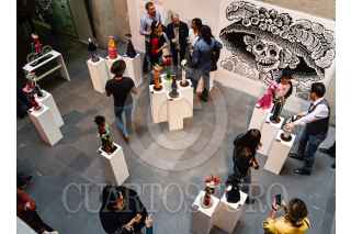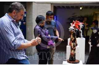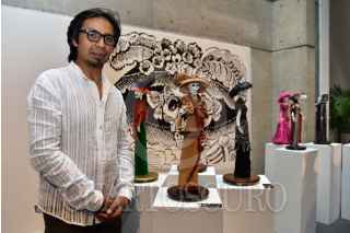CIUDAD DE MÉXICO, 28OCTUBRE2017.- Se llevo a cabo la inauguración de la exposición “La Catrina está de moda” en el Centro Cultural España. La muestra está comprendida por esculturas de catrinas en las que diseñadores de moda intervinieron en sus vestimentas. En la imagen del artista mexicano Jesús Guillén. FOTO: MARIO JASSO /CUARTOSCURO.COM