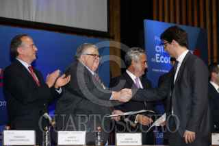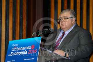 CIUDAD DE MÉXICO, 30OCTUBRE2017.- Agustín Carstens Carstens, Gobernador del Banco de México, y Ernesto Torre Cantú, director de Citibanamex, encabezaron la entrega del Premio Citibanamex de Economía 2016. Carstens señalo que la inflación presenta su nivel más alto, pero será temporal. FOTO: CUARTOSCURO.COM