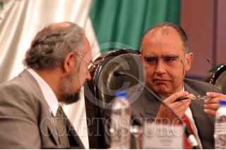 México, D.F., 06OCTUBRE2004.- Fernando Canales Clarion, secretario de Economía, comparecio ante diputados en el recinto de San Lázaro dentro de la Glosa del IV Informe de Gobierno. En la gráfica, Canales Clarion charla el diputado Francisco Javier Saucedo . FOTO: Moisés Pablo/CUARTOSCURO.COM