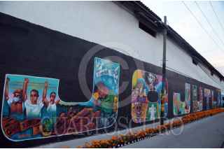 JOJUTLA, MORELOS, 30OCTUBRE2017.- Soldados durante la inauguracion del mural alusivo al sismo del pasado 19 de septiembre que afectó gravemente a este municipio del sur. FOTO: MARGARITO PÉREZ RETANA /CUARTOSCURO.COM