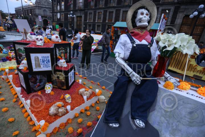 CIUDAD DE MÉXICO, 30OCTUBRE2017.- Ofrendas del día de muertos en la plaza Santo Domingo organizada por la Universidad Nacional Autónoma de México, con el tema de Diego Rivera. FOTO: ADOLFO VLADIMIR /CUARTOSCURO.COM