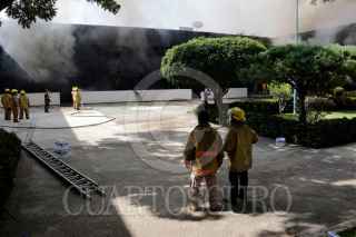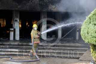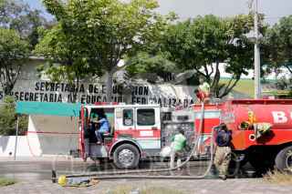 TUXTLA GUTIERREZ, CHIAPAS, 31OCTUBRE2017.- La mañana de este martes sujetos encapuchados prendieron fuego a las instalaciones de la Subsecretaría de Educación Federalizada (SEF), hasta el momento se desconoce su paradero. Al lugar arribaron elementos de Bomberos, Protección Civil y SEDENA para combatir el fuego. FOTO: JACOB GARCIA /CUARTOSCURO.COM