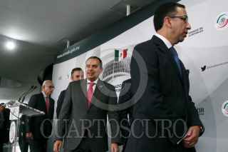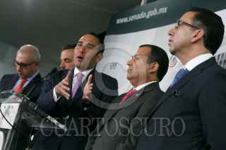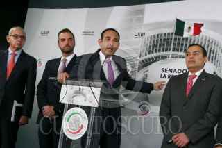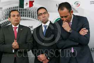 CIUDAD DE MÉXICO, 31OCTUBRE2017.- Los senadores panistas Javier Lozano, Jorge Luis Lavalle Maury y Salvador Vega Casillas ofrecieron una conferencia de prensa en el Senado de la República, en la cual se refiere ton al caso de la destitución de la remoción de Santiago Nieto la frente de la Fepade, señalaron que a pesar de que el ex fiscal haya declinado la posibilidad de exponer su caso ante el pleno de la Cámara Alta, este órgano tiene la obligación de llamar a cuentas a Santiago Nieto y Alberto Elías Beltrán, encarga de despacho de la PGR. FOTO: MOISÉS PABLO /CUARTOSCURO.COM
