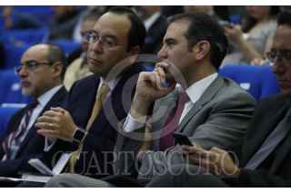 CIUDAD DE MÉXCIO, 01NOVIEMBRE2017.- Los consejeros Ciro Murayama Rendón y Lorenzo Córdova Vianello, presidente del INE, durante el Foro Internacional Debates Electorales: El reto hacia el 2018. FOTO: INE /CUARTOSCURO.COM