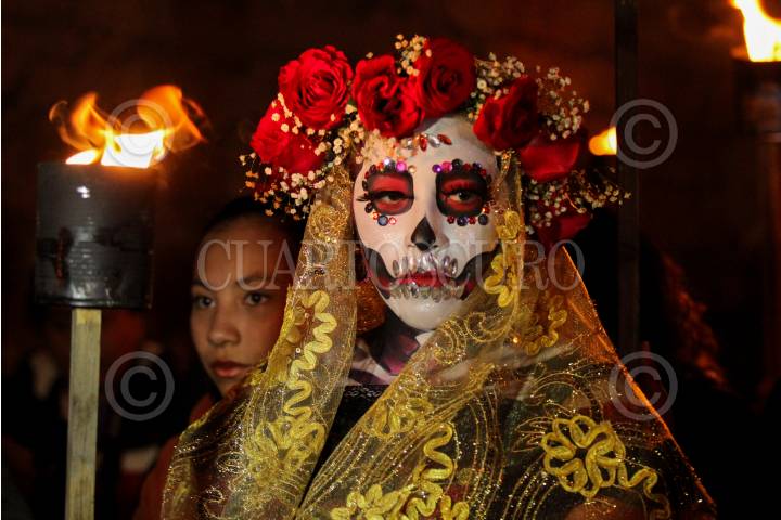 CHIGNAHUAPAN, PUEBLA, 02NOVIEMBRE2017.- Con motivo del Día de Muertos se realizó la tradicional “Procesión de las mil luces” previo a la representación del mito del paso del alma por las 9 pruebas antes de llegar al Mictlan, según lo dicta la narración azteca. FOTO: GALO CAÑAS /CUARTOSCURO.COM