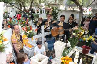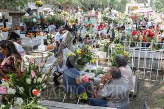CIUDAD DE MÉXICO, 02NOVIEMBRE2017.- Habitantes de la delegación Iztapalapa asistieron al panteón civil delegacional, donde adornaron las criptas de sus seres queridos con flores, veladoras, globos, papel picado y adornos, algunas familias se organizaron para comer, escuchar música, platicar y recordar viejos momentos. FOTO: SAÚL LÓPEZ /CUARTOSCURO.COM