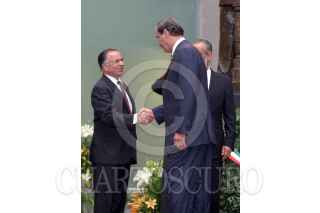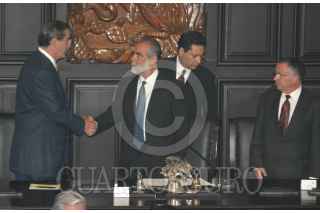 MEXICO, D.F. 07OCTUBRE2004.- El presidente Vicente Fox saluda a Diego Fernánez de Cevallos, presidente de la mesa directiva de la cámara de senadores a su llegada al recinto del Xicotencatl, donde se llevó a cabo la entrega de la medalla Belisario Dominguez. FOTO: Nelly Salas/CUARTOSCURO.COM