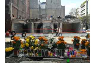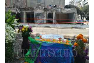 CIUDAD DE MÉXICO, 02NOVIEMBRE2017.- Montaron un altar de Día de Muertos en memoria de las personas que fallecieron en el edificio que se colapso en la calle de Laredo y Amsterdam, en la colonia Condesa, por el sismo del 19 de septiembre. FOTO: MOISÉS PABLO /CUARTOSCURO.COM