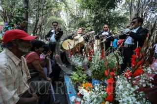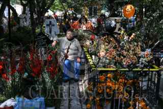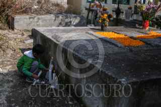 CIUDAD DE MÉXICO, 02NOVIEMBRE2017.- Miles de personas visitan a sus difuntos en el panteón de Xilotepec en la delegación Xochimilco. Con flores, limpiando las criptas o tumbas, música y comida, disfrutan recordando a sus familiares en el Día de muertos. FOTO: ADOLFO VLADIMIR /CUARTOSCURO.COM