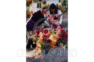 ASUNCIÓN NOCHIXTLÁN, OAXACA., 02NOVIEMBRE2017.- Familiares acompañan y llevan flores a las tumbas de sus muertos como parte de la celebración de la fiesta de Todos Santos en el panteón municipal de Asunción Nochixtlán. FOTO: ADRIANA ALVAREZ /CUARTOSCURO.COM