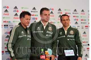 CIUDAD DE MÉXICO, 03NOVIEMBRE2017.- Juan Carlos Osorio, técnico de la Selección Nacional Mexicana y Dennis te Kloese, de selecciones nacionales de la Federación Mexicana de Futbol, presentaron a Gerardo Torrado como nuevo director deportivo de la selección mexicana FOTO: CUARTOSCURO.COM