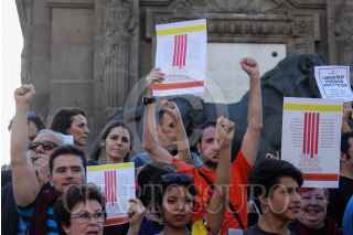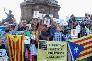 CIUDAD DE MÉXICO, 05NOVIEMBRE2017.- Integrantes de la comunidad catalana en México se manifestaron en las escalinatas del Ángel de la Independencia para exigir la libertad de presos políticos del gobierno catalán, tras la proclamación de independencia y separación del gobierno español. FOTO: GALO CAÑAS /CUARTOSCURO.COM