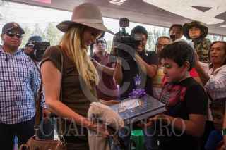 CIUDAD DE MÉXICO, 06NOVIEMBRE2017.- La socialité Paris Hiltón visitó la zona de San Gregorio, una de las zonas más afectadas por los sismos de septiembre en la delegación Xochimilco, en donde convivió con niños y les obsequió cobijas. FOTO: ISAAC ESQUIVEL /CUARTOSCURO.COM