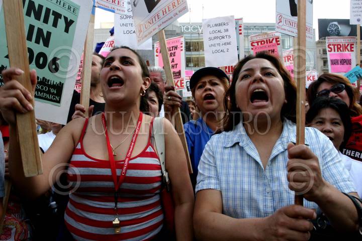 SAN FRANCISCO, CA 14OCTUBRE2004.- Miembros del Local 2 del sindicato HERE/UNITE, son expulsados de los hoteles donde laboraban después de dos semanas de huelga, luego de solicitar pagos más altos para cuidados médicos. FOTO: David Bacon/CUARTOSCURO.COM