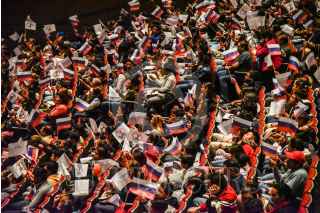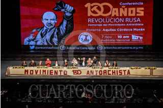 CIUDAD DE MÉXICO, 07NOVIEMBRE2017.- Aquiles Córdova Morán, fundador y líder de Movimiento Antorchista Nacional, encabezó la conferencia “100 Años de la Revolución Rusa” en el Auditorio Nacional, en donde miles de miembros se dieron cita para celebrar y homenajear el primer centenario de la Revolución Rusa. FOTO: MARIO JASSO /CUARTOSCURO.COM