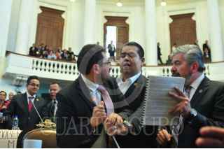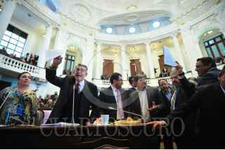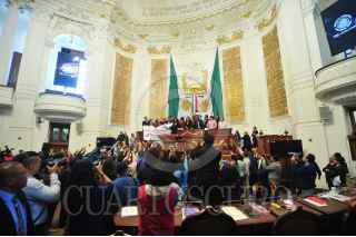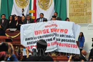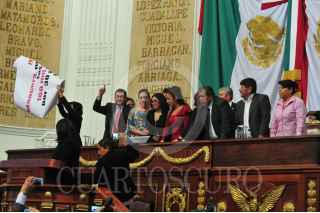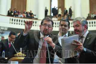 CIUDAD DE MÉXICO, 07NOVIEMBRE2017.- Los diputados de Morena tomaron la tribuna de la Asamblea Legislativa del Distrito Federal cuando se tocó el tema de la construcción de una planta termovalorizadora en el Bordo Poniente, en donde los morenistas acusaron a Miguel Ángel de Mancera de ser su negocio, acusando al Jefe de Gobierno de no tener dinero para la reconstrucción de la ciudad tras los sismos de septiembre, perso si para un negocio de 100 mil millones de pesos. FOTO: CUARTOSCURO.COM