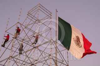 CIUDAD DE MÉXICO, 07NOVIEMBRE2017., Trabajadores comienzan a montar el escenario para el concierto de “La semana de la Juventud” con sede en el zócalo capitalino. FOTO: ANDREA MURCIA /CUARTOSCURO.COM