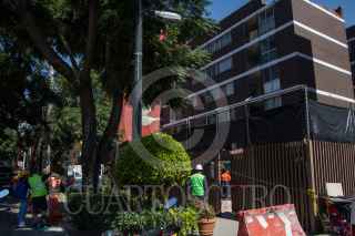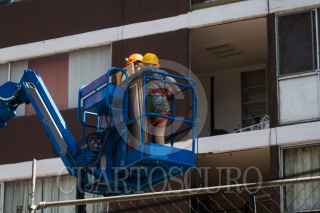 CIUDAD DE MÉXICO, 08NOVIEMBRE2017.- Habitantes de uno de los edificios dañados por el sismo del 19 de septiembre pasado, sobre avenida Miramontes, sacan algunas de sus pertenencias a través de grúas, con la ayuda de trabajadores de la Delegación Coyoacán, previo a su demolición. FOTO: ISAAC ESQUIVEL /CUARTOSCURO.COM