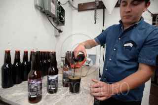ZINACANTEPEC, ESTADO DE MÉXICO,08NOVIEMBRE2017.- Los jóvenes emprendedores Claudio y Miguel, dueños de la marca de cerveza artesanal Murciélago, han logrado producir en su pequeño taller mas de 2 mil botellas al mes, compitiendo con al menos 500 cervecerías artesanales que se encuentran constituidas en el Estado de México, ofreciendo un producto de calidad y netamente artesanal. FOTO: ARTEMIO GUERRA BAZ /CUARTOSCURO.COM