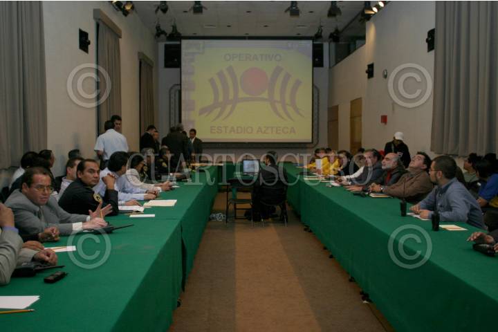 MEXICO, D.F. 14OCTUBRE2004.- Gabriel Regino, subsecretario de seguridad pública se reunió con integrantes de las porras de los pumas de la UNAM y las aguilas del América para definir el operativo en el Estadio Azteca, con motivo del partido que se diputará el próximo domingo entre ambas escuadras. FOTO: Nelly Salas/CUARTOSCURO.COM