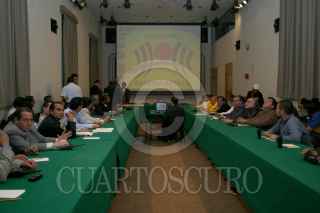 MEXICO, D.F. 14OCTUBRE2004.- Gabriel Regino, subsecretario de seguridad pública se reunió con integrantes de las porras de los pumas de la UNAM y las aguilas del América para definir el operativo en el Estadio Azteca, con motivo del partido que se diputará el próximo domingo entre ambas escuadras. FOTO: Nelly Salas/CUARTOSCURO.COM