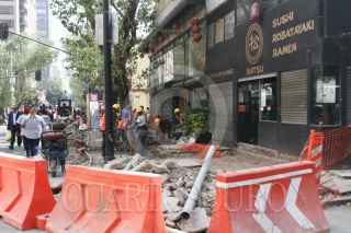 CIUDAD DE MÉXICO, 09NOVIEMBRE2017.- La calle de Independencia y Dolores en la colonia Centro están siendo remodelada en sus aceras, esto como parte de un programa de remozamiento del llamado Barrio Chino. FOTO: MOISÉS PABLO /CUARTOSCURO.COM