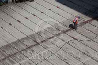 CIUDAD DE MÉXICO, 09NOVIEMBRE2017.- Un trabajador del Tecnológico de Monterrey campus Santa Fe realiza la limpieza del techo de uno de los edificios de la institución educativa. FOTO: GALO CAÑAS /CUARTOSCURO.COM