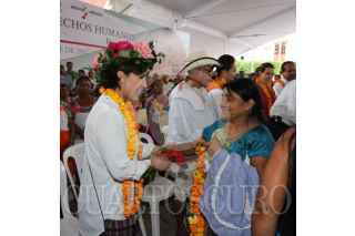 HUEJUTLA, HIDALGO, 10NOVIEMBRE2017.- Rosario Robles Berlanga titular de la Secretaría de Desarrollo Agrario, Territorial y Urbano (SEDATU) efectuó una gira de trabajo por el estado de Hidalgo donde hizo entrega de diversos apoyos para las comunidades indígenas como entrega de certificados agrarios y cuartos adicionales, como parte de las acciones “Papelito Habla” y “Un Cuarto Más”. FOTO: CUARTOSCURO.COM