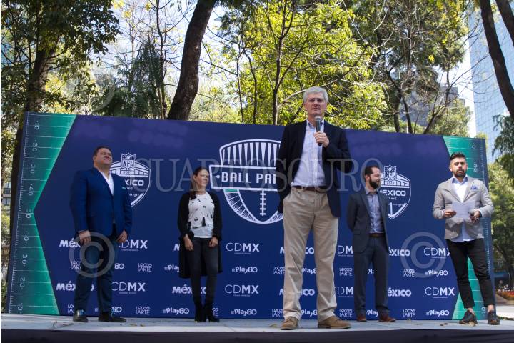 CIUDAD DE MÉXICO, 12NOVIEMBRE2017.- Sobre avenida Reforma se inauguró el NFL Ball Parade, una exposición con cascos de americano intervenidos por artistas mexicanos y que podrán ser apreciados por la gente que camine sobre avenida Reforma, esto previó al partido del próximo domingo entre Patriots y los Raiders de la NFL, partido de temporada regular que se disputará en el Estadio Azteca. FOTO: MOISÉS PABLO /CUARTOSCURO.COM