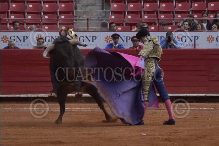 CIUDAD DE MÉXICO, 12NOVIEMBRE2017.- Se llevo a cabo el cierre de temporada para novilladas en la Monumental Plaza de Toros México. En la imagen un banderillero se resguarda en un burladero. FOTO: MARIO JASSO /CUARTOSCURO.COM
