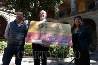 CIUDAD DE MÉXICO, 13NOVIEMBRE2017.- Se presentó a cargo de Guillermo Calderón Aguilera, Director General de Metrobús y Bertha Cea Echenique, Coordinadora Ejecutiva del Antiguo Colegio de San Ildefonso la imagen de la nueva tarjeta de Ciudad Conmemorativa 25 aniversario del Antiguo Colegio de San Ildefonso. Se distribuirán 100 mil tarjetas en las líneas 4 y 6 de Metrobús y se podrán recargar para el uso del mismo, así como el uso de otros sistemas de transporte como el Metro, Tren ligero y Ecobici. FOTO: ANDREA MURCIA /CUARTOSCURO.COM