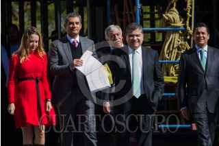 CIUDAD DE MÉXICO, 13NOVIEMBRE2017.- Enrique Ochoa Reza, presidente nacional del PRI, Miguel Riquelme, candidato a gobernador de Coahuila, y el senador Carlos Alberto Puente Salas, acudieron al Tribunal Electoral del Poder Judicial de la Federación para discutir la posible anulación de la elección en dicho estado. FOTO: ISAAC ESQUIVEL /CUARTOSCURO.COM