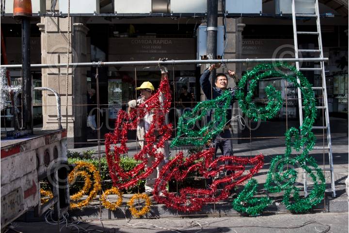 CIUDAD DE MÉXICO, 15NOVIEMBRE2017.- En el Zócalo capitalino han iniciado la decoración navideña para las próximas fiestas decembrinas. FOTO: TERCERO DÍAZ /CUARTOSCURO.COM