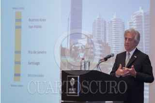 CIUDAD DE MÉXICO, 15NOVIEMBRE2017.- Tabaré Ramón Vázquez, presidente de la República de Uruguay, durante su participación en el Comité Empresarial México-Uruguay organizado por el Comercio Exterior, Inversión y Tecnología (COMCE). FOTO: MARIO JASSO /CUARTOSCURO.COM