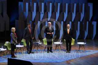 CIUDAD DE MÉXICO, 15NOVIEMBRE2016.- Mario Molina, Lawrence Krauss, Richard Somerville, Daniel P. Schrag, Alicia Bárcena y Noam Chomsky, durante el debate del "Proyecto Originis: cambio climático, consecuencias ambientales y sociales para México y el mundo", realizado en la sala Nezahualcóyotl del Centro Cultural Universitario de la UNAM. FOTO: ADOLFO VLADIMIR /CUARTOSCURO.COM