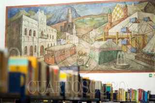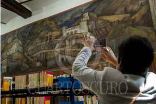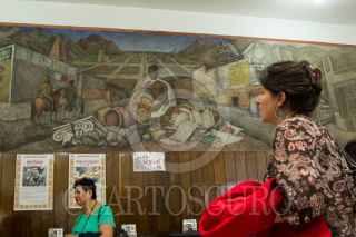 CIUDAD DE MÉXICO, 16NOVIEMBRE2017.- Aspectos del recién restaurado mural de Juan O’Gorman “Paisaje de Azcapoitzalco”, en la casa de cultura de dicha delegación. El mural data de 1929. FOTO: GALO CAÑAS /CUARTOSCURO.COM