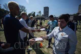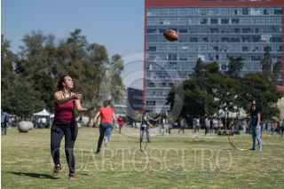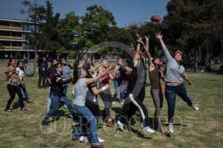 CIUDAD DE MÉXICO, 16NOVIEMBRE2017.- Jugadores de los Pumas CU convivieron y obsequiaron boletos a la comunidad estudiantil en las Islas de Ciudad Universitaria, previo a la final de la ONEFA en contra de los Tigres de la UANL el próximo sábado en el estadio Olímpico Universitario. FOTO: ADOLFO VLADIMIR /CUARTOSCURO.COM