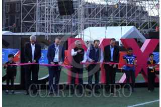 CIUDAD DE MÉXICO, 17NOVIEMBRE2016.- Miguel Ángel Mancera, jefe de gobierno de la Ciudad de México, inauguró el NFL FanFest Zócalo, como parte de las actividades que forman parte del juego en el estadio Azteca el próximo domingo entre los Raiders y Patriots. FOTO: ADOLFO VLADIMIR /CUARTOSCURO.COM