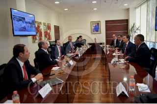 CIUDAD DE MÉXICO, 17NOVIEMBRE2017.- Francisco Guzmán Ortiz, jefe de la oficina de la presidencia, se reunió en la Residencia Oficial de Los Pinos con el gobernador de Chiapas, Manuel Velasco Coello, y el director general de la Conagua, Roberto Ramírez de la Parra, para evaluar los avances en los trabajos de recuperación y desazolve en las Cascadas de Agua Azul, en esa entidad. FOTO: PRESIDENCIA /CUARTOSCURO.COM