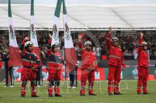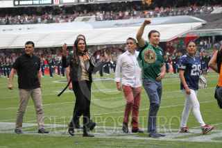 CIUDAD DE MÉXICO, 19NOVIEMBRE2017.- Raiders de Oakland y Patriotas de Nueva Inglaterra, disputaron un partido de temporada regular de la NFL, en el Estadio Azteca, en donde los "Pats" se llevaron la victoria por 33-8. En la imagen, se rindió un homenaje a los rescatistas del pasado sismo del 19 de septiembre. FOTO: LUIS CARBAYO / CUARTOSCURO.COM