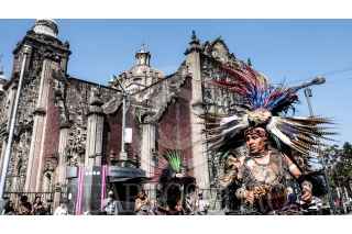 CIUDAD DE MÉXICO, 20NOVIEMBRE2017.- Un señor realiza danzas prehispánicas a un costado de la Catedral Metropolitana de la Ciudad de México. FOTO: ELIZABETH RUIZ /CUARTOSCURO.COM