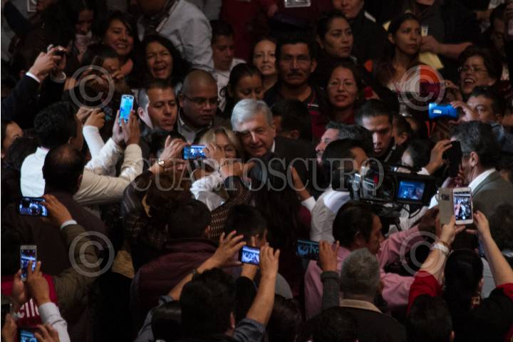 CIUDAD DE MÉXICO, 20NOVIEMBRE2017.- Andrés Manuel López Obrador, líder nacional de Morena, y la delegada de Tlapan Claudia Sheinbaum, durante la votación del Proyecto Alternativo de Nación 2018-2024, en el Auditorio Nacional. FOTO: MOISÉS PABLO /CUARTOSCURO.COM