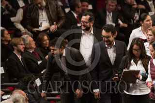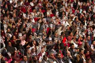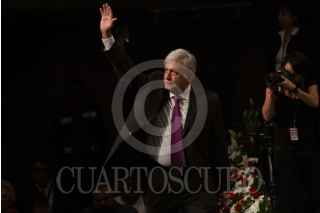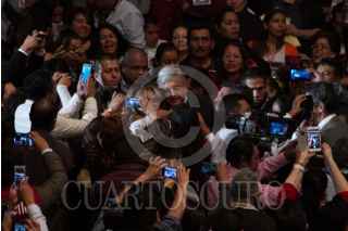CIUDAD DE MÉXICO, 20NOVIEMBRE2017.- Andrés Manuel López Obrador, líder nacional de Morena, y la delegada de Tlapan Claudia Sheinbaum, durante la votación del Proyecto Alternativo de Nación 2018-2024, en el Auditorio Nacional. FOTO: MOISÉS PABLO /CUARTOSCURO.COM