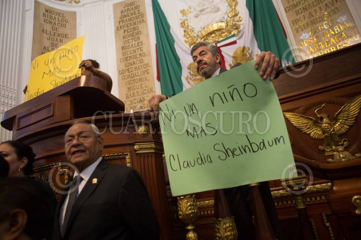 CIUDAD DE MÉXICO, 21NOVIEMBRE2017.- César Cavrioto, diputado de Morena en la Asamblea Legislativa del Distrito Federal, encabezó una protesta previo ala sesión en contra de la destitución de la anterior presidenta de la mesa directiva. Al mismo tiempo, Raúl Flores, diputado del PRD, encabezó una protesta en el recitno contra Claudia Sheinbaum y los diputados de Morena. FOTO: TERCERO DÍAZ /CUARTOSCURO.COM